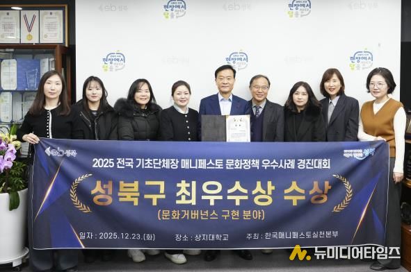 서울 성북구가 한국매니페스토실천본부와 강원특별자치도경제진흥원이 공동 주최한'제1회 2025 전국 기초단체장 매니페스토 문화정책 콘체르토(Concerto)'에서 문화거버넌스 분야 최우수상을 수상했다.