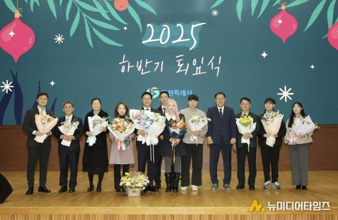 이날 퇴임식에는 퇴임 공무원과 가족, 동료 직원 등 100여 명이 참석한 가운데 ▲공로패 수여 ▲퇴임 소회 발표 ▲장금용 시장 권한대행과의 환담 ▲기념촬영 순으로 진행되며 따뜻한 분위기 속에서 공직 생활의 마침표를 함께했다.