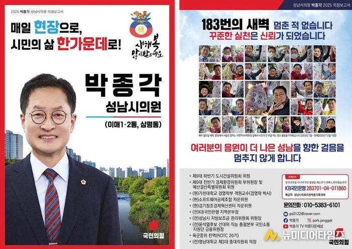 성남시의회 박종각 의원(국민의힘, 이매1·2동·삼평동)이 2025년 의정활동 성과를 정리한 의정보고서를 발간했다. 제9대 시의회 임기 동안 현장을 누빈 활동과 지역 민생 개선의 결과들을 담아낸 내용이다.