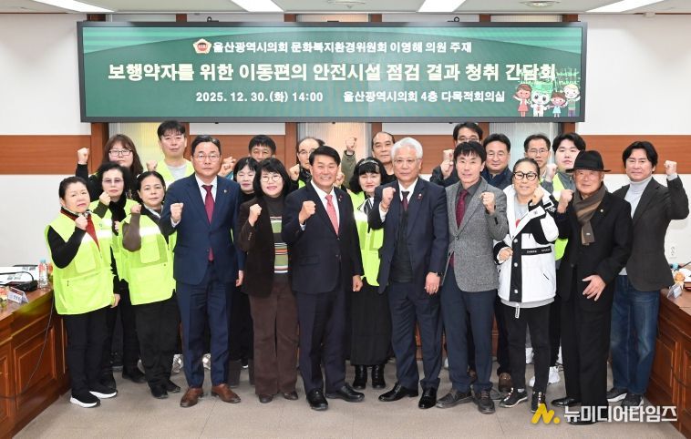 울산광역시의회 문화복지환경위원회 이영해 의원은 30일 오후 2시 4층 다목적회의실에서 '보행약자를 위한 이동편의 안전시설 점검 결과 청취 간담회'를 개최하고, 보행약자의 안전한 이동환경 조성을 위한 개선방안을 논의했다.