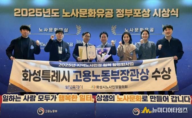 화성특례시는 지난 30일 고용노동부 주관으로 열린 '2025년 노사문화유공 정부포상 시상식’에서 ‘지역노사민정 협력 유공’단체부문 고용노동부장관 표창을 수상했다고 31일 밝혔다.