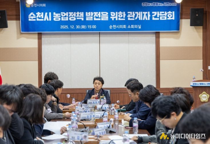 순천시의회는 지난 12월 30일 순천시의회 소회의실에서 '순천시 농업정책발전을 위한 관계자 간담회'를 개최하고, 관계 부서 및 청년 농업인 등과 함께 실질적인 농업지원 방안을 모색했다.
