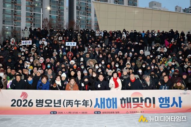 인천 동구는 1일 송현근린공원에서 각 동 주민자치회·자생단체 회원 등 다수의 구민이 참여한 ‘2026년 병오년 새해 맞이’행사를 개최했다고 밝혔다.