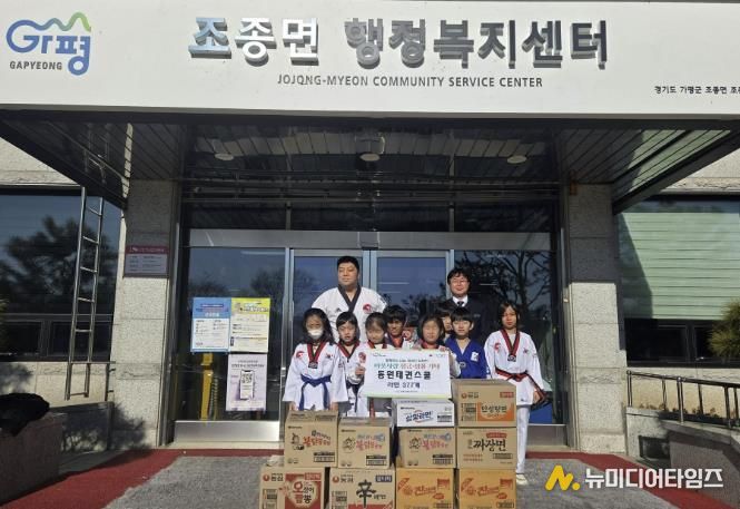 가평 동원태권스쿨은 지난해 연말 조종면 행정복지센터를 방문해 라면 377개를 기탁하며 이웃사랑을 실천했다.
