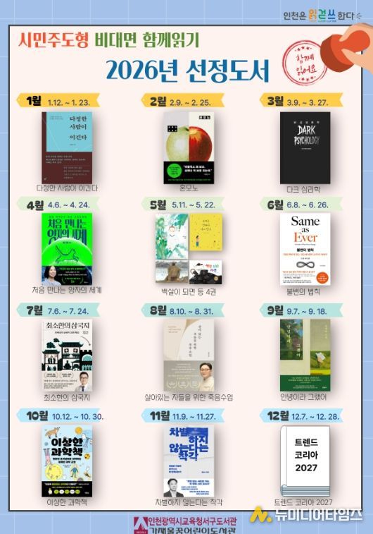 인천광역시교육청서구도서관은 12월 31일 ‘2026년 시민주도형 비대면 함께읽기’ 도서 15권을 선정·발표했다.