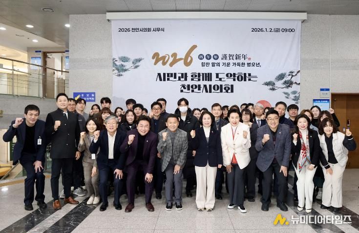 천안시의회는 1월 2일 오전 9시, 의회 1층 로비에서 2026년 시무식을 열고 새해 업무를 본격적으로 시작했다.