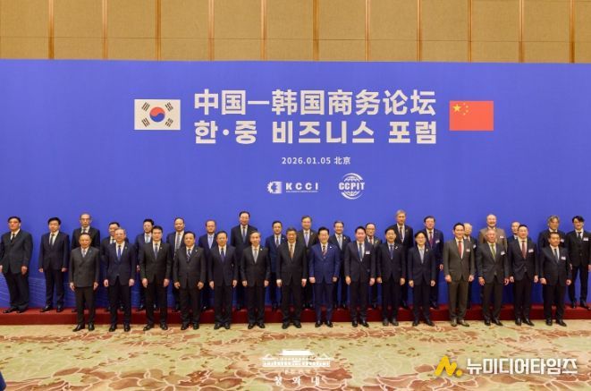 포럼에 앞서 열린 한중 주요 기업인 간담회에서도 이 대통령은 "한중은 같은 바다를 같은 방향을 향해 함께 항해하는 배와 같은 입장"이라며 "산업 공급망 간 연계로 서로 발전에 도움을 주고 글로벌 경제를 선도해 왔다"고 평가했다.