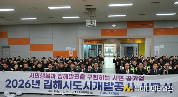 김해시도시개발공사는 지난 2일 2026년 새해 시무식에서 전 직원이 청렴실천과 안전보건 결의를 다지며 힘차게 새해 첫 업무를 시작했다고 밝혔다.