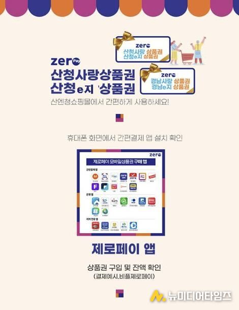 산청군은 7일 온라인 전용 산청사랑상품권‘산청e지’를 발행했다고 밝혔다.