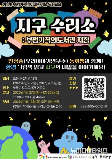 이번 프로그램은 국립어린이청소년도서관에서 운영하는 ‘2026년 제112회 전국 도서관 겨울 독서교실’의 일환으로 열리며, ‘지구 수리소: 부평기적의도서관 지점’을 주제로 진행된다.