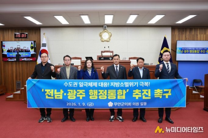 무안군의회가 전라남도와 광주광역시 행정통합의 조속한 추진을 촉구하고 나섰다.