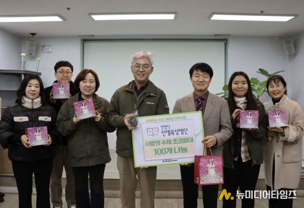 이번 활동은 12일 재단 창립 15주년을 맞아, 기념행사 대신 지역사회 소외계층에게 온정을 전하고 공공기관으로서의 사회적 책임을 다하기 위해 마련됐다. 이날 행사에는 재단 전 임직원이 참여해 사회적기업과 연계한 제과 체험 활동을 진행하며 직접 100여 개의 초코파이를 만들었다.