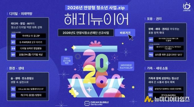 안병일 재단 대표이사는 “2026년 신규사업은 단순한 프로그램 확대가 아니라, 청소년이 스스로 선택하고 기획하며 사회와 연결되는 구조를 만드는 데 의미가 있다”며, “청소년의 오늘이 곧 안양의 내일이 되는 정책을 지속적으로 추진하겠다”고 밝혔다.