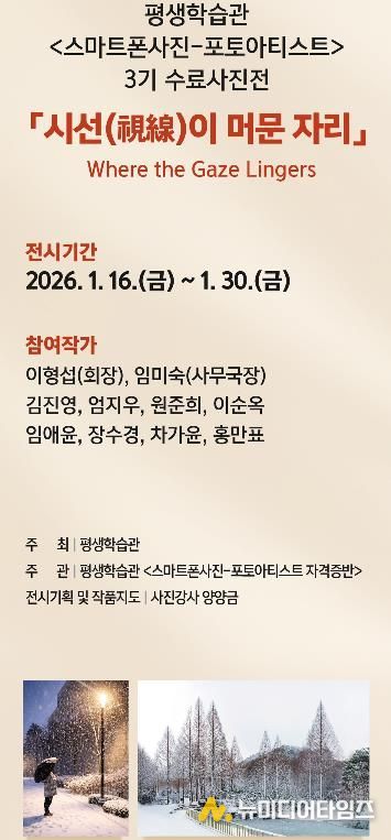 광주시 평생학습관은 ‘스마트폰사진–포토아티스트’ 3기 수강생들의 교육과정을 마무리하며 수료사진전 ‘시선(視線)이 머문 자리’를 개최한다고 15일 밝혔다.
