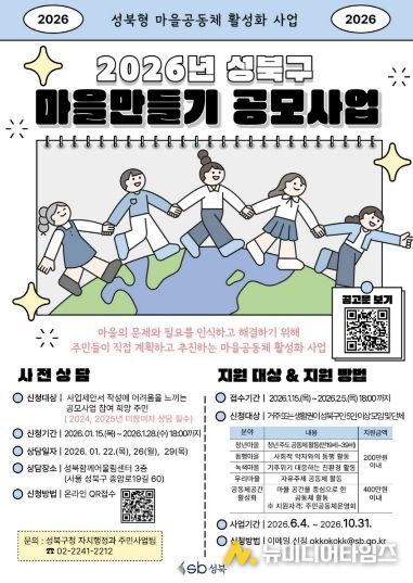 서울시 성북구는 마을공동체 활성화를 위해 '2026년 성북구 마을만들기 공모사업'을 진행한다.
