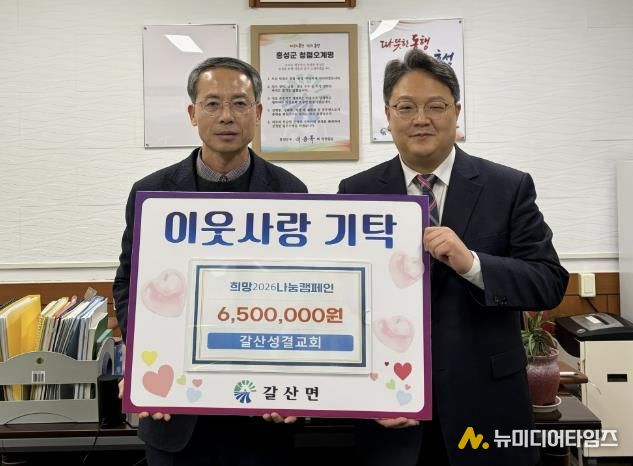 김완섭 갈산면장은 “희귀난치성질환 가구는 경제적·정신적으로 큰 부담을 안고 생활하고 있다”며, “갈산성결교회의 따뜻한 나눔이 대상 가구에 큰 위로와 용기가 될 것”이라고 말했다.