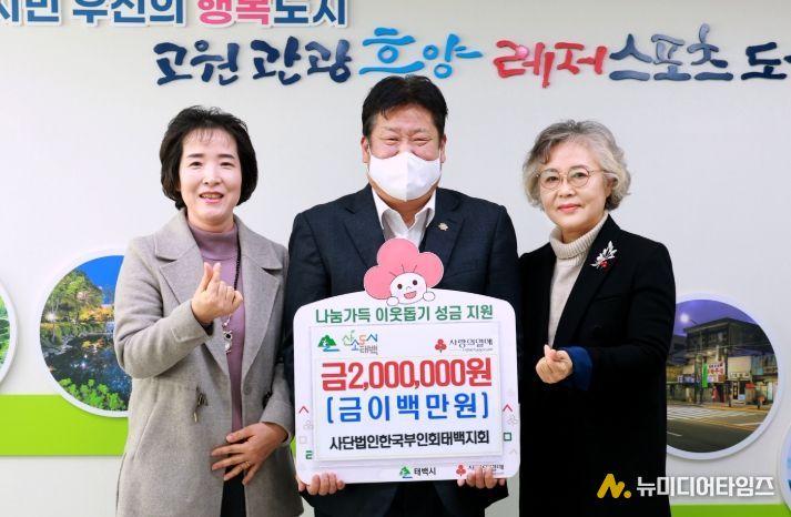 태백시는 사단법인 한국부인회 태백지회(회장 김애숙)가 지난 15일 저소득 가구 및 소외계층을 위해 성금 200만 원을 기부했다고 밝혔다.