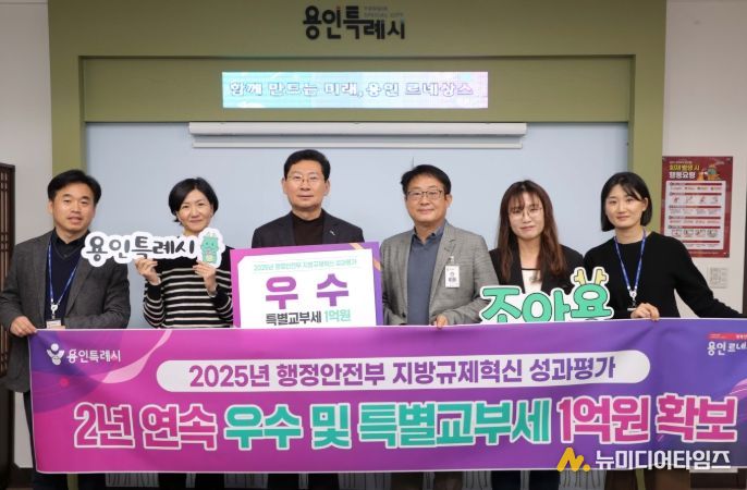 용인특례시는 지난해에 이어 ‘지방규제혁신 성과평가’에서 우수 기관으로 선정돼 특별교부세 1억 원을 확보했다고 16일 밝혔다.