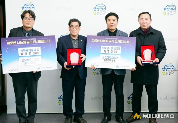 김재명 성북새마을금고 이사장과 황영선 현대자동차 성북삼선교점 대표는 “지역사회와 함께 성장해 온 기관으로서 나눔에 동참하게 되어 뜻깊게 생각한다” 며 “앞으로도 지역복지 발전을 위한 사회공헌 활동을 지속해 나가겠다”고 전했다.