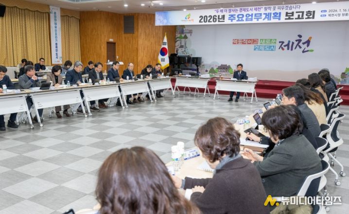 제천시는 지난 16일 시청 청풍호실에서 전 부서가 참여하는 ‘2026년 주요업무계획 보고회’를 개최하고, 새해 시정 운영 방향과 핵심사업 전반을 점검했다.