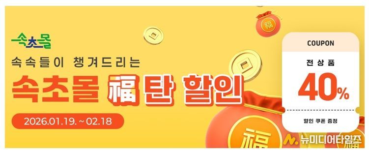 속초시 대표 온라인 쇼핑몰 ‘속초몰’이 설 명절을 맞아 고객 감사 이벤트로 전 상품 40% 할인쿠폰 발급 행사를 운영한다.