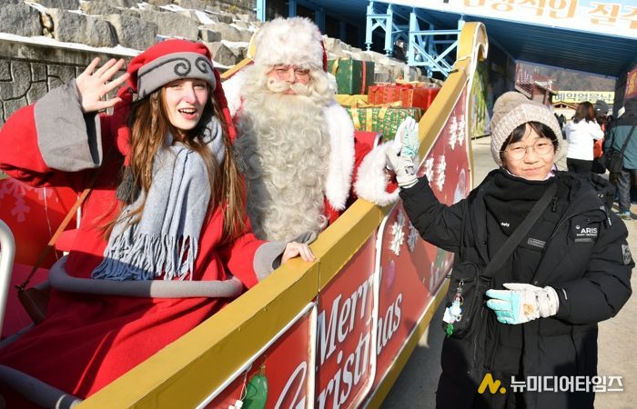 핀란드 로바니에미시 산타마을의 ‘진짜’산타클로스와 요정 ‘엘프’가 17일 화천산천어축제장에 도착했다.