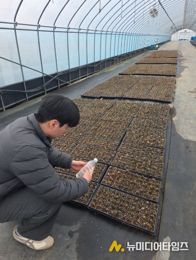 금산군농업기술센터는 올해 금산천 데크길 꽃잔디 식재를 위한 우수 육묘 생산에 총력 대응하고 있다.