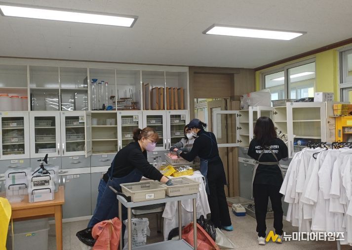 이번 지원은 교원의 업무 부담을 경감하고 과학실 교육환경을 개선하기 위해 추진됐으며, 서산교육지원청 학교지원센터 특별실정리지원단 7명이 참여했다.