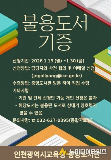 인천광역시교육청중앙도서관은 지역사회 내 도서 나눔 문화를 확산하고 지식 자원의 선순환을 실천하기 위해 ‘불용도서 기관 나눔’ 사업을 운영한다.