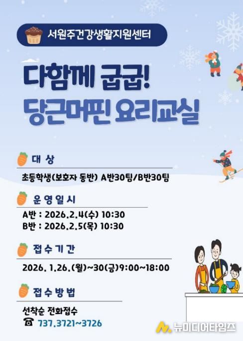 서원주건강생활지원센터는 겨울방학 중 아이들의 올바른 식습관 형성을 돕기 위해 ‘다함께 굽굽! 당근머핀 요리교실’ 프로그램을 운영한다.