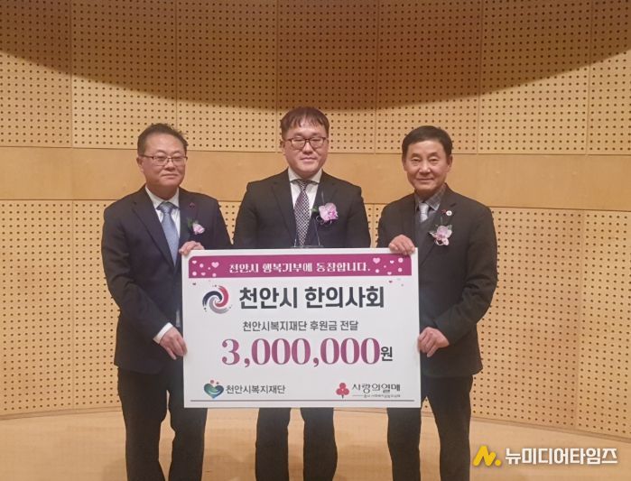 (재)천안시복지재단은 지난 19일 천안시한의사회가 제72회 정기총회를 열고 취약계층을 위한 후원금 300만 원을 기탁했다고 밝혔다.