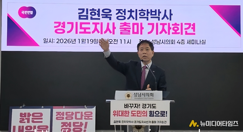 국민연합 김현욱 대표가 제9회 전국동시지방선거 경기도지사 출마를 공식 선언하며 ‘혁신과 개혁의 경기도 시대’를 약속했다. 김 대표는 19일 오전 11시 성남시의회 4층 세미나실에서 기자회견을 열고, “거대 독과점 양당제를 청산하고 패거리 정치문화를 타파하여 나라와 경기도민을 살리겠다”는 포부를 밝혔다.