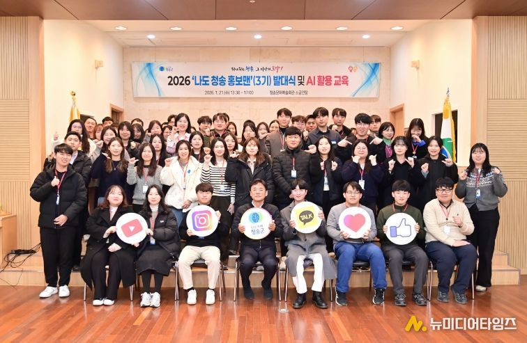 청송군은 직원들이 직접 SNS 홍보에 참여하는 2026년 ‘나도 청송 홍보맨’ 발대식 및 AI 활용 교육을 21일 청송문화예술회관 소공연장에서 개최했다.