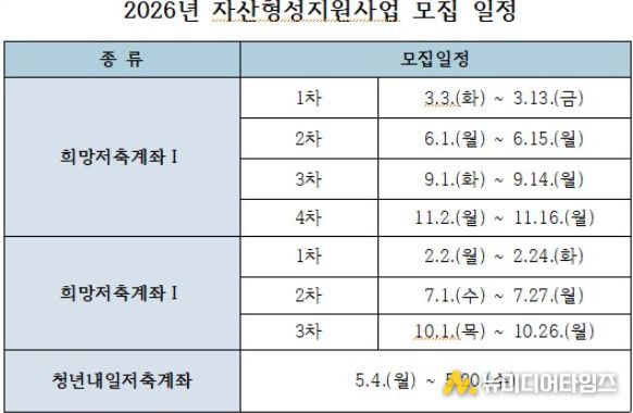 조훈석 복지과장은 “자산형성지원사업은 단순한 현금 지원을 넘어, 스스로 미래를 준비하고 자립할 수 있도록 돕는 정책”이라며, “앞으로도 취약계층과 저소득 청년의 자립을 위한 맞춤형 지원을 지속적으로 확대해 나가겠다”고 말했다.