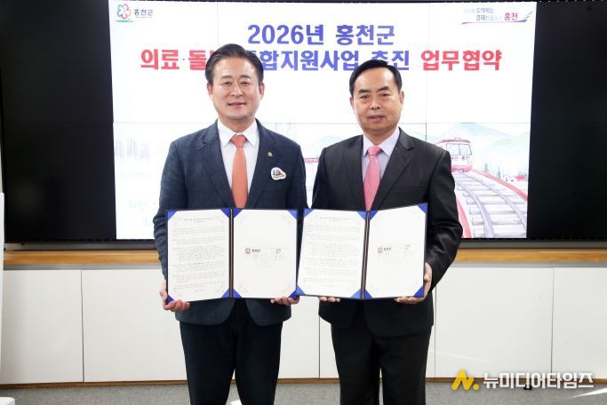 홍천군은 2026년 1월 22일 군청 접견실에서 사회복지법인 ‘중앙원’과 의료 돌봄 통합 지원사업 협력 기관 협약식을 열고 업무협약을 체결했다.