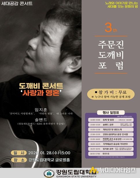 강원도립대학교(총장 최종균)는 오는 1월 28일 오후 3시, 강원도립대학교 글로벌홀에서 ‘제3회 주문진 도깨비 포럼’을 개최한다.