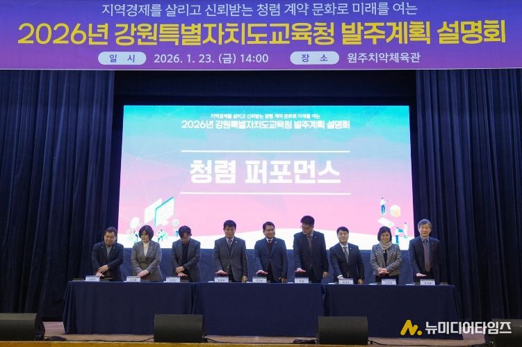 강원특별자치도교육청은 23일 원주 치악체육관에서 청렴한 계약문화 확산과 지역경제 상생을 위한 ‘2026년 공사·용역·물품 발주계획 설명회’를 개최했다.