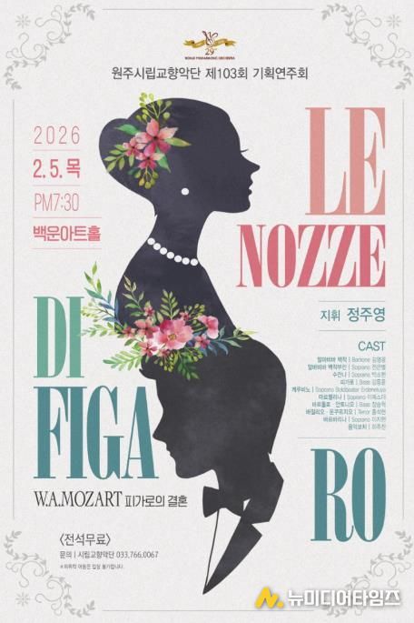 원주시립교향악단은 오는 2월 5일 오후 7시 30분 백운아트홀에서 제103회 기획연주회 ‘피가로의 결혼’을 개최한다.