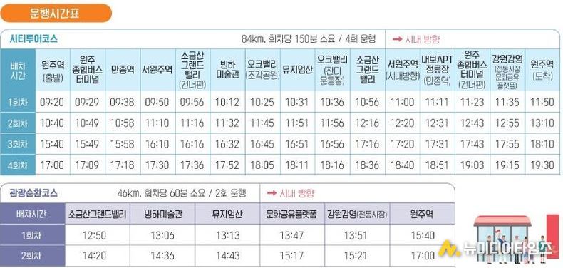 이를 위해 주요 관광지와 전통시장을 잇는 관광 순환 코스를 편성하고, 탑승 시간 및 회차별 시간 간격을 줄였다. 또한 만종역과 서원주역 승강장을 추가해 대중교통을 이용하는 관광객의 접근성을 강화했다. 관광객 요청이 많았던 빙하미술관 승강장도 새로 포함됐다.