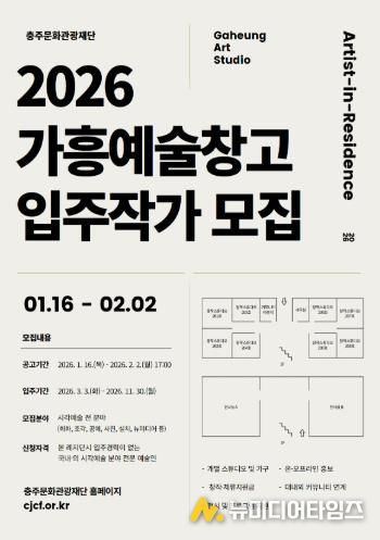 (재)충주문화관광재단이 충주공예전시관 레지던시‘가흥예술창고’4기 입주작가를 오는 2월 2일까지 공개 모집한다고 밝혔다.