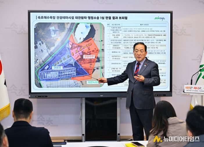 속초시는 1월 26일 오전 11시 30분, 시청 브리핑룸에서 속초해수욕장 관광테마시설 대관람차(속초아이)와 관련한 행정소송 1심 판결 결과를 설명하는 미디어 브리핑을 진행했다.