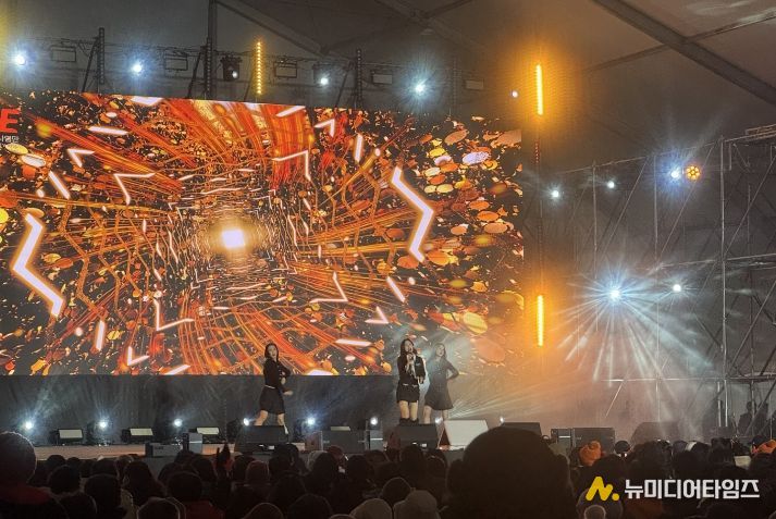 클럽형 조명과 레이저, 미디어 퍼포먼스가 어우러지며 청양의 겨울밤을 단숨에 달궜다.