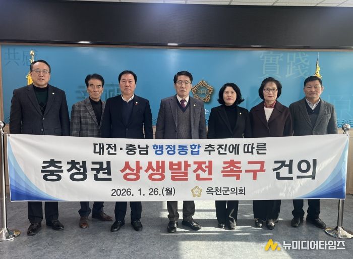 충북 옥천군의회는 지난 26일 열린 제330회 임시회 제1차 본회의에서 대전·충남 행정통합과 관련하여, 통합의 성과가 충청권 전반으로 확산되도록 정부와 지자체에 상생발전을 촉구하는 건의안을 채택했다.