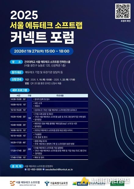 서울특별시교육청은 1월 27일 AI·디지털 기반 교육환경 지원 방안 모색을 위한‘서울 에듀테크 소프트랩 커넥트 포럼’을 개최한다.