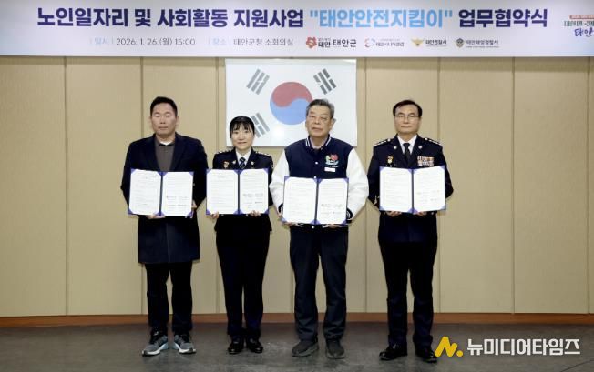 군은 26일 군청 소회의실에서 태안경찰서, 태안해양경찰서, 태안시니어클럽과 함께 지역 치안과 연안 안전을 지켜줄 ‘태안안전지킴이’ 사업단의 성공적인 안착을 위한 협약을 체결했다고 밝혔다.