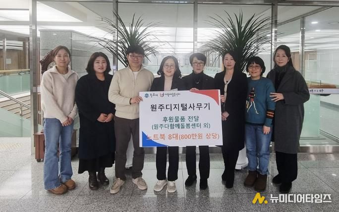 원주시 단계동 소재 원주디지털사무기는 지난 23일 원주시 다함께돌봄센터 등 8개소에 총 800만 원 상당의 노트북 8대를 후원했다.