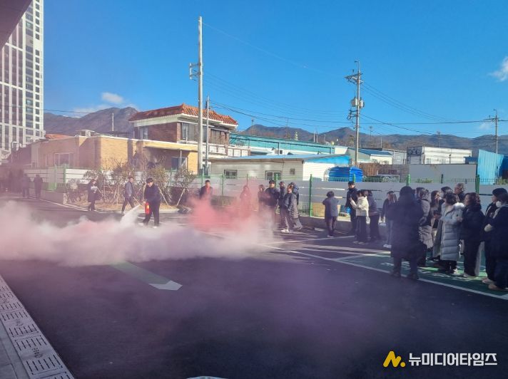 주요 교육 및 훈련 내용은 ▲피난 교육 ▲화재 상황 전파 ▲전 시설 대피 유도 ▲피난 동선 확인 ▲대피 인원 점검 ▲현장 통제 및 훈련 강평 순으로 진행됐으며, 특히 소화기 및 옥내소화전 사용 훈련을 포함한 실감형 훈련을 병행해 현장 대응 능력을 한층 강화했다.