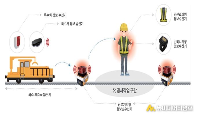 열차접근 경보장치는 특수차가 접근할 경우 작업자의 조끼·손목시계 등 4종 수신 알림장치로 즉시 경보음을 송출하는 방식으로 작동한다. 시·청각 기반 알림시스템 도입을 통해 작업자가 대피할 수 있는 ‘골든타임’을 확보할 수 있게 됐다.