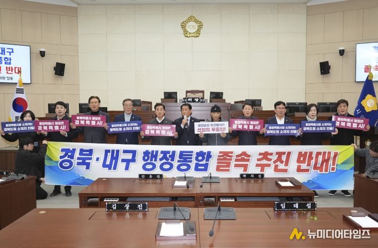김경도 안동시의회 의장은“정부의 재정 지원 약속이 실질적인 실행 계획 없이 선언적 수준에 머문다면, 통합은 결국‘대구 중심’으로 치우쳐 지역 불균형을 심화시킬 것”이라며, “안동시의회는 시민의 뜻에 따라 지역의 미래를 위협하는 졸속 통합 추진에 맞서 흔들림 없이 나아갈 것”이라고 강조했다.