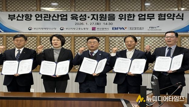 부산시는 27일 오후 2시 30분 부산항만공사 중회의실에서 부산지방해양수산청, 부산지방고용노동청, 부산항만공사, 부산항만산업총연합회와 '부산항 항만연관산업* 육성·지원을 위한 업무협약'을 체결했다고 밝혔다.